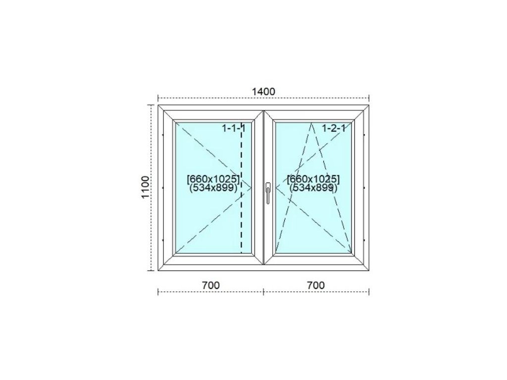 Vlastnosti dvoukřídlého plastového okna (1400x1100 mm) BEZ SLOUPKU
