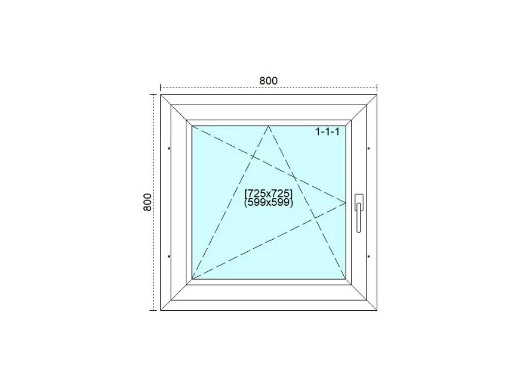 Jednokřídlé plastové okno (800x800 mm) Bílé